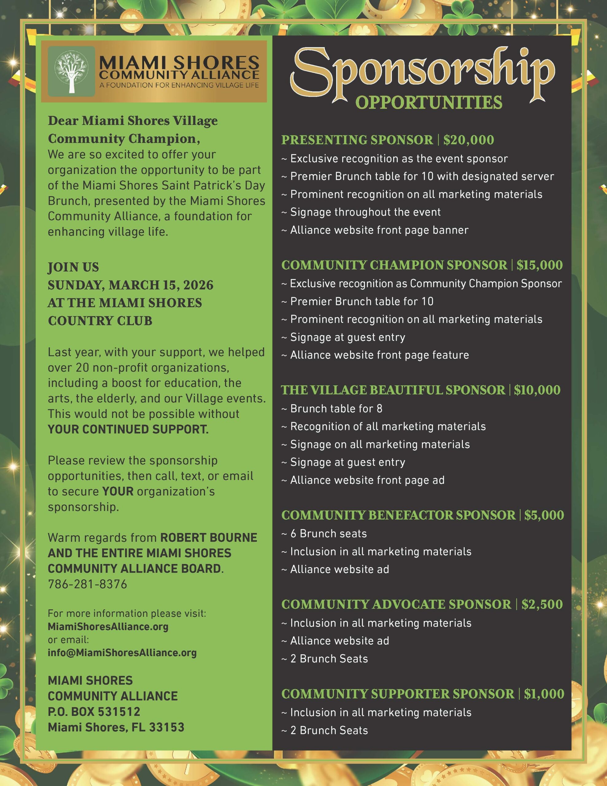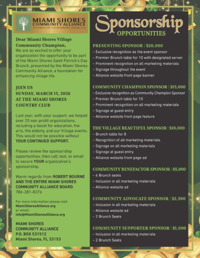 Mail- Mail a check payable to Miami Shores Community Alliance. P.O. Box 531512 Miami Shores, FL 33153